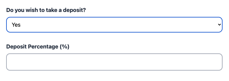 4) A dropdown for the deposit percentage will then appear below. Enter the percentage amount you would like to charge the customer to secure their appointment.